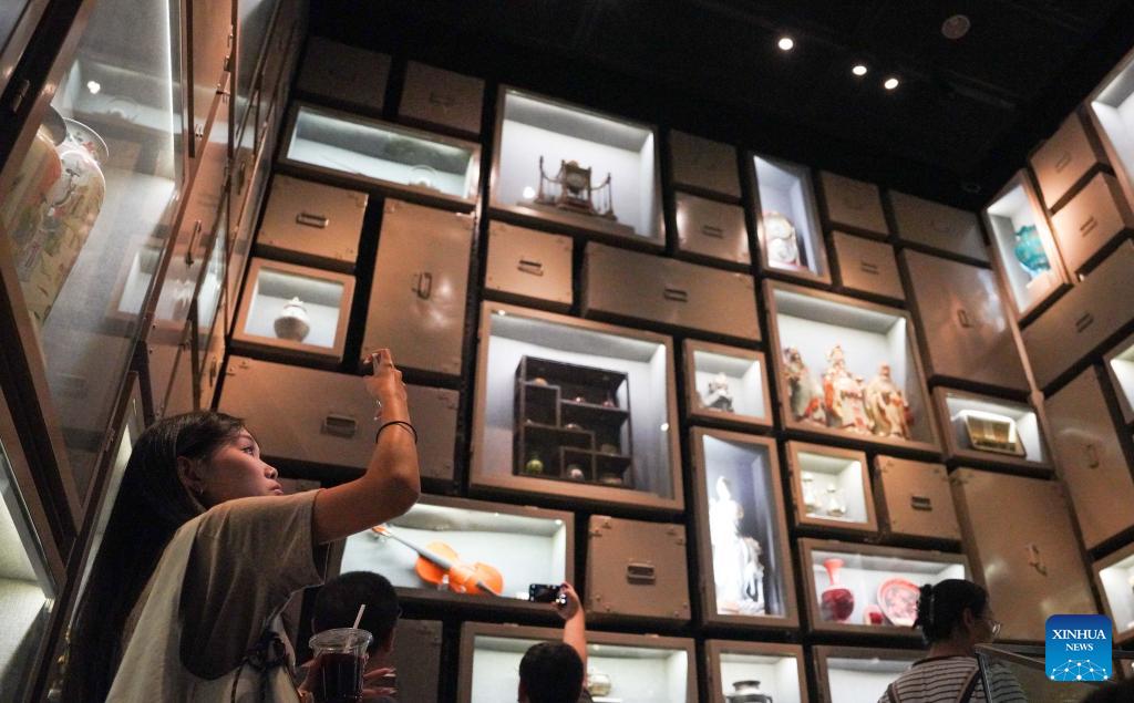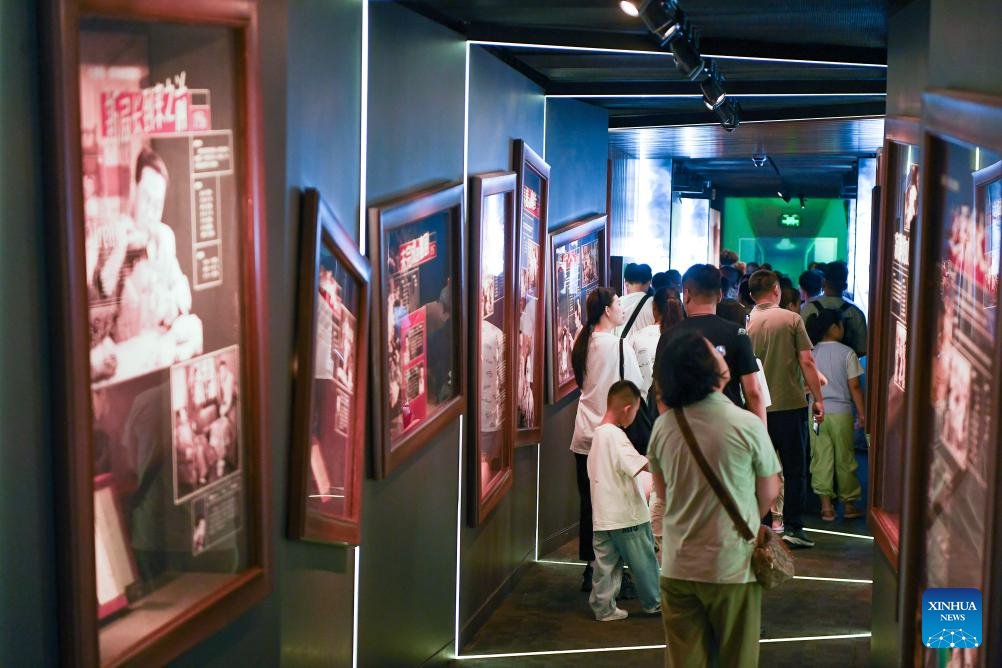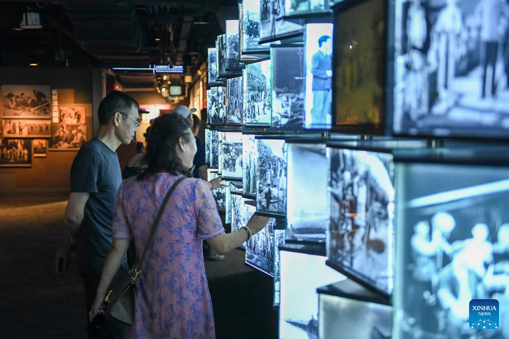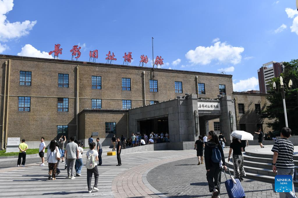 People visit a film museum built on the former site of Changchun Film Studio in Changchun, northeast China's Jilin Province, Aug. 7, 2025. Since the start of the summer vacation, the film museum has attracted visitors with film resources, with peak daily visitor numbers exceeding 8,000. (Xinhua/Zhang Nan)