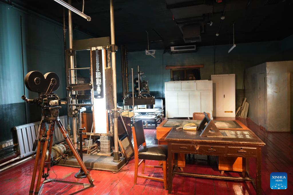 This photo taken on Aug. 7, 2025 shows a recreated scene of the subtitling team's workplace at a film museum built on the former site of Changchun Film Studio in Changchun, northeast China's Jilin Province. Since the start of the summer vacation, the film museum has attracted visitors with film resources, with peak daily visitor numbers exceeding 8,000. (Xinhua/Liu Wenhui)