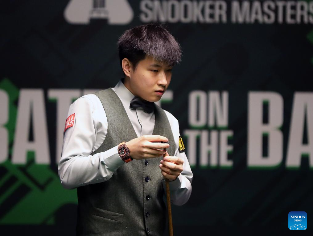 Chang Bingyu of China competes during the round 6 match against Ronnie O'Sullivan of England at the Saudi Arabia Snooker Masters 2025 in Jeddah, Saudi Arabia, Aug. 13, 2025. (Xinhua/Wang Dongzhen)