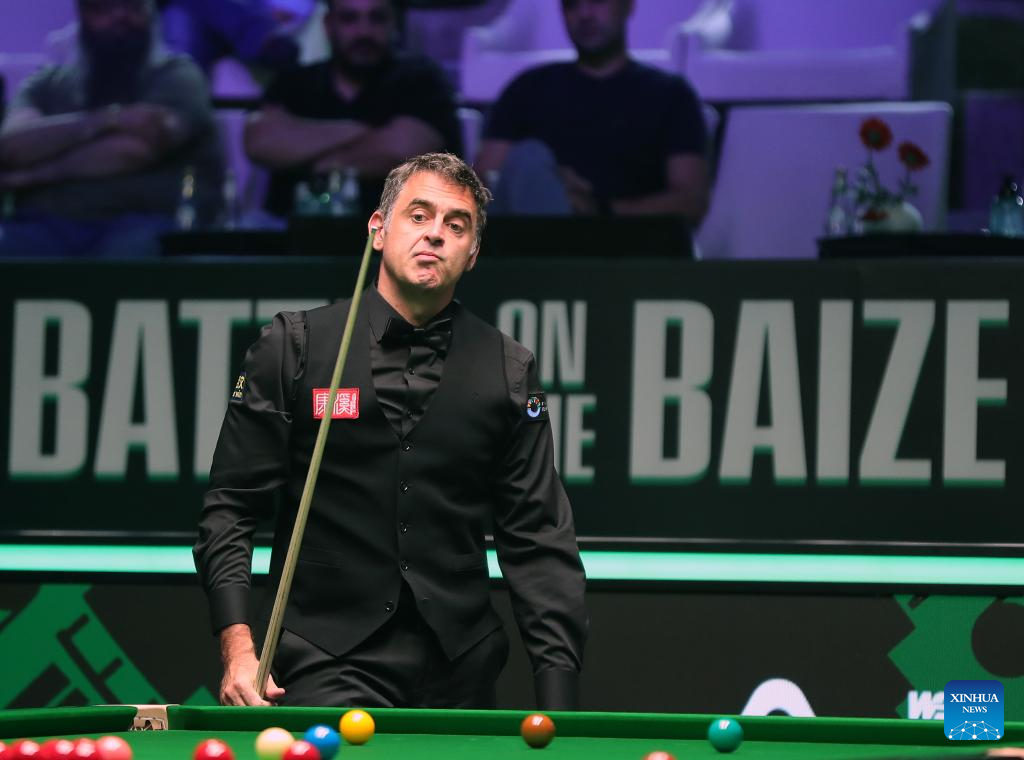 Ronnie O'Sullivan of England competes during the round 6 match against Chang Bingyu of China at the Saudi Arabia Snooker Masters 2025 in Jeddah, Saudi Arabia, Aug. 13, 2025. (Xinhua/Wang Dongzhen)