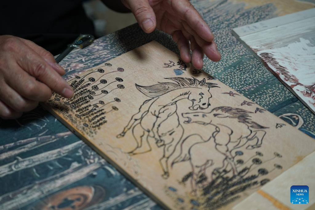 Pic story of Jarud woodblock painting art in China's Inner Mongolia