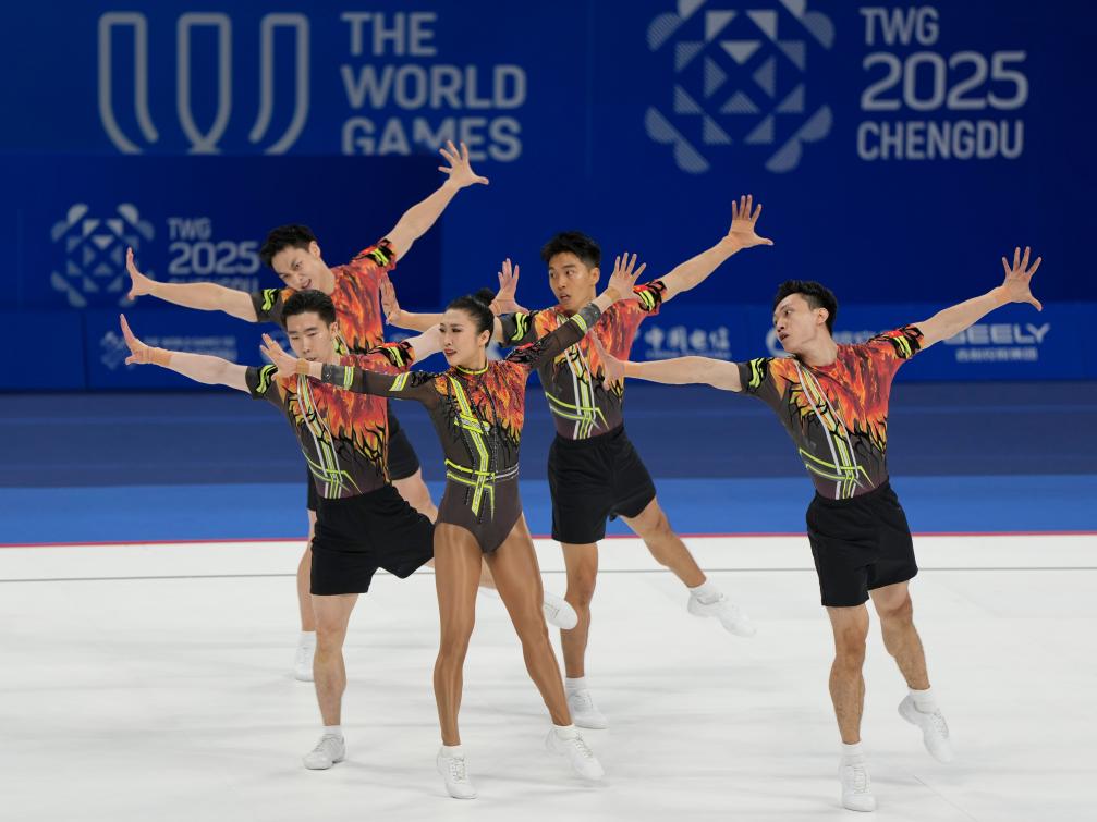 CHENGDU, Aug. 15 (Xinhua) -- China claimed the aerobic gymnastics group gold at the Chengdu World Games here on Friday, with Italy taking silver and Romania bronze at the Dong'an Lake Sports Park Multi-Function Gymnasium.