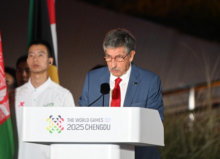 IWGA President Jose Perurena Lopez delivers a speech during the closing ceremony, on Aug. 17, 2025. (Xinhua/Zhang Bowen)
