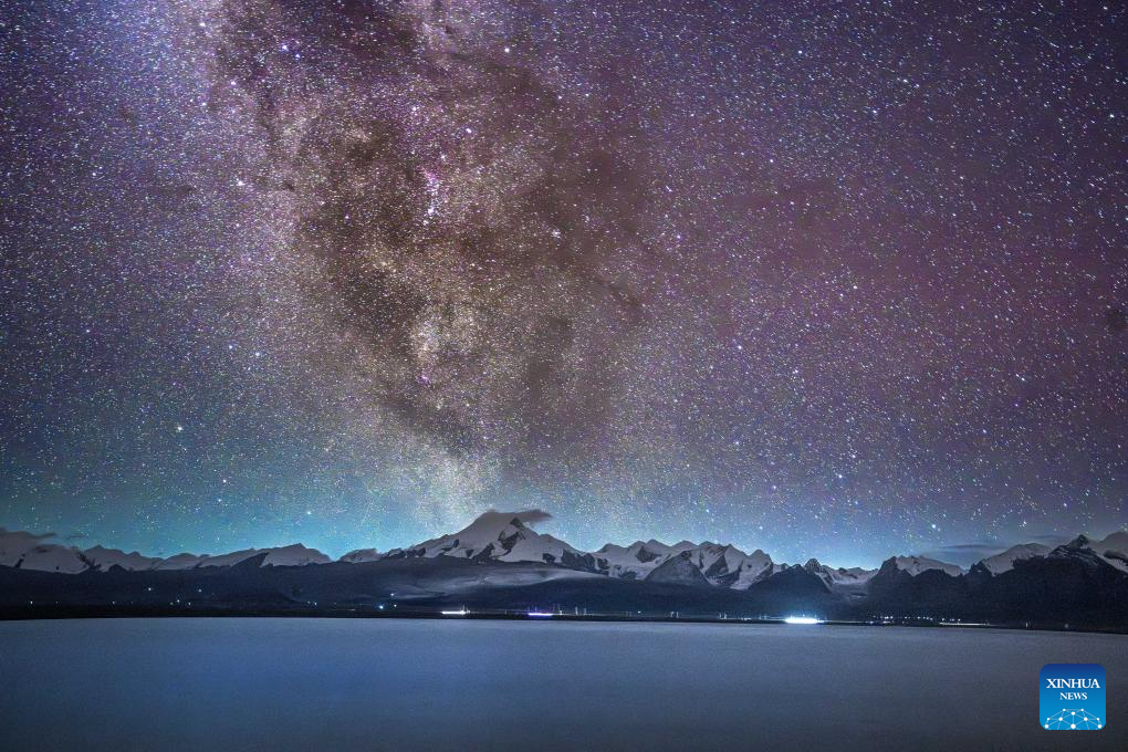 Baiku Co, with a water area of approximately 300 square kilometers, has its lake surface at an altitude of 4,590 meters. Thanks to the excellent air quality on the plateau, the Milky Way is clearly visible in the starry sky at the end of summer and the beginning of autumn, forming a magnificent scene together with the lake and snow-capped mountains. (Photo by Ma Lichao/Xinhua)