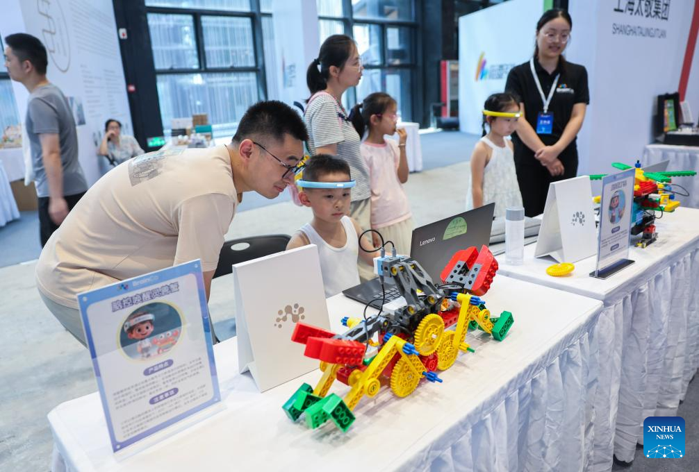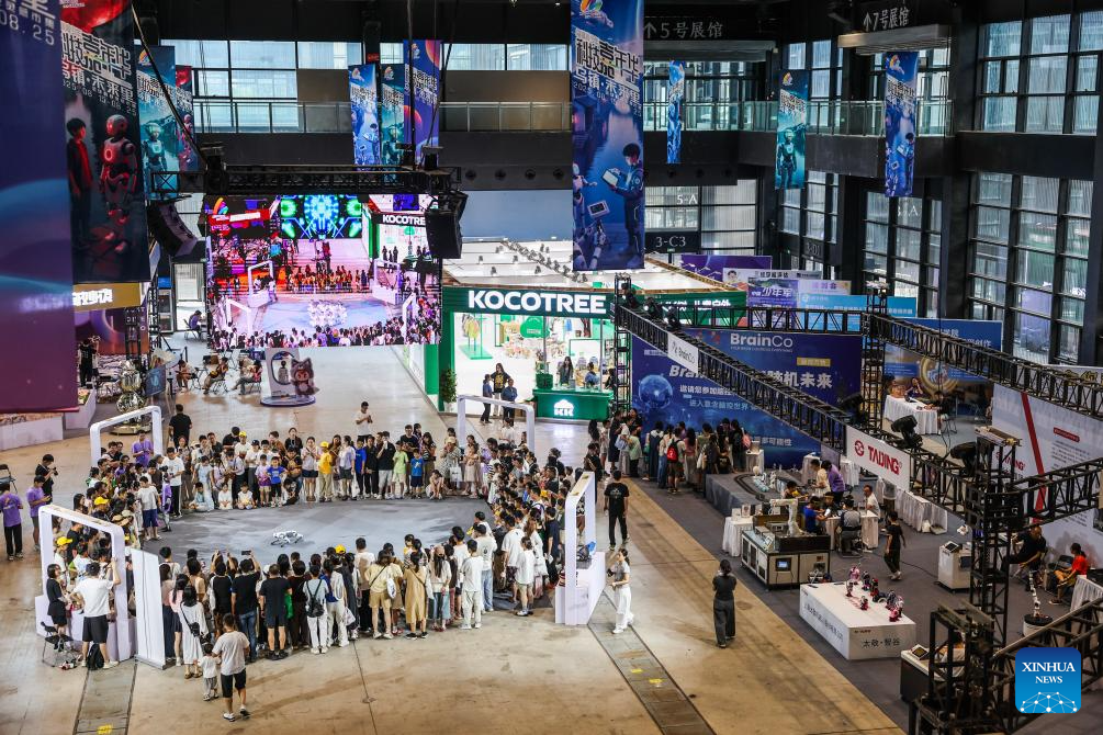 This photo taken on Aug. 17, 2025 shows a scene of the Wuzhen Youth Tech Carnival held in Wuzhen, east China's Zhejiang Province. The first Wuzhen Youth Tech Carnival is held from Aug. 15 to 25 in Wuzhen of Tongxiang City. This 11-day technology event, bringing together more than 40,000 young technology enthusiasts from all over the world, builds up a comprehensive platform for teenagers to show wisdom, boost innovation and touch the future. (Xinhua/Xu Yu)