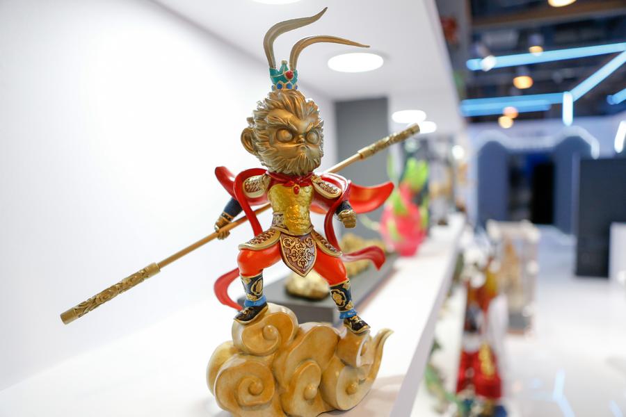 A creative cultural product themed on Chinese mythological figure the Monkey King or Sun Wukong, is pictured during the 2024 China International Fair for Trade in Services at the China National Convention Center in Beijing, capital of China, Sept. 12, 2024. (Xinhua/Ding Hongfa)