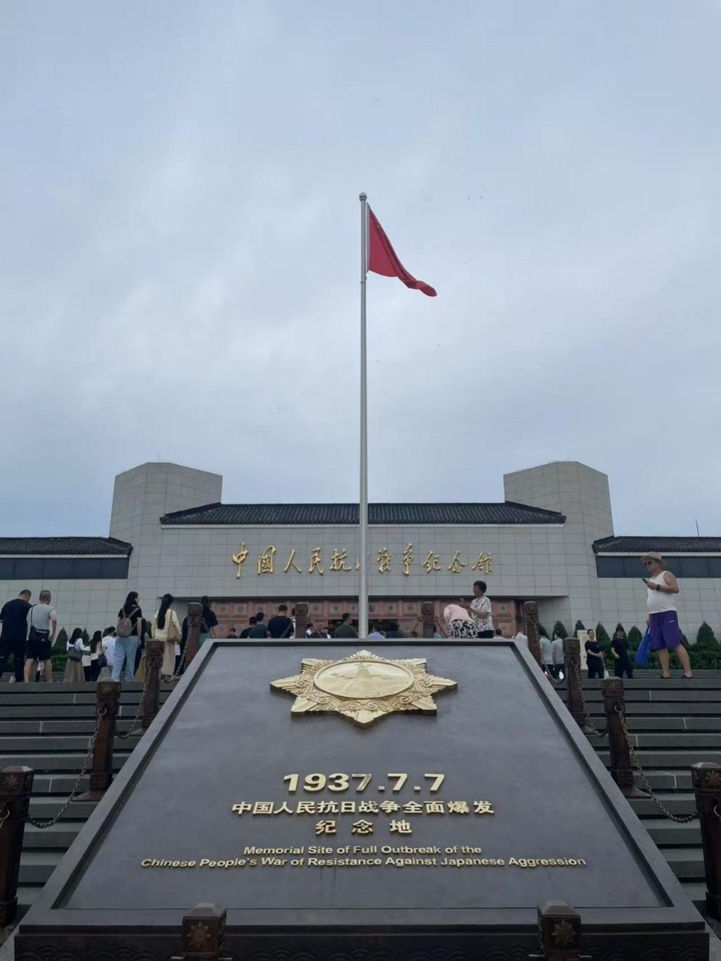 Photo shows visitors in front of the Museum of the War of Chinese People's Resistance Against Japanese Aggression. (Photo by Pedro Loeher)