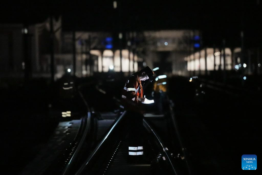 Staff members inspect, maintain Hangzhou-Shaoxing-Taizhou intercity railway in E China