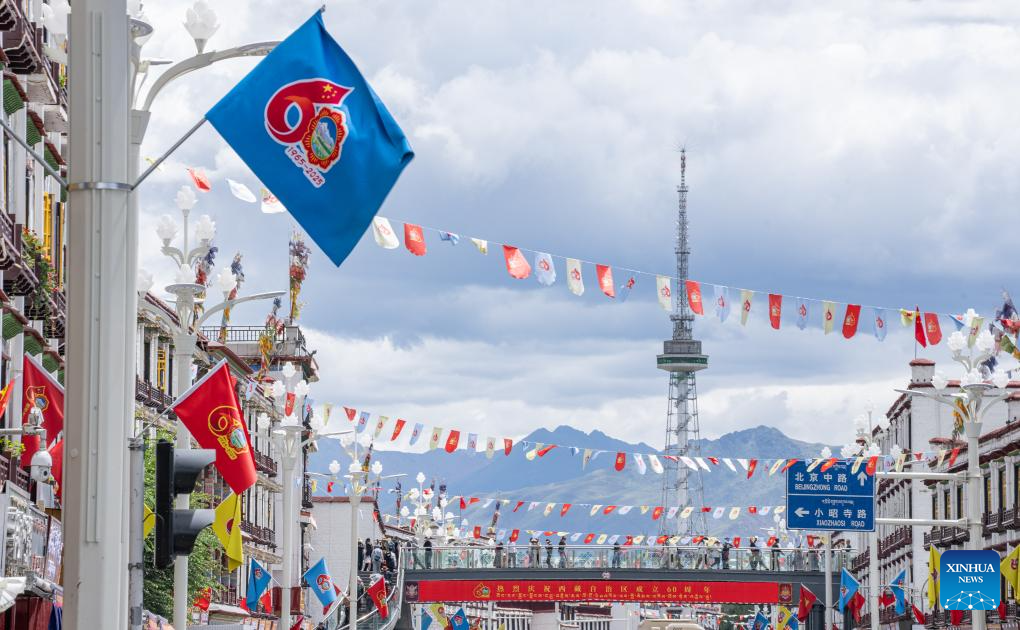 Streets of Lhasa adorned with lanterns, decorations to celebrate 60th founding anniv. of Xizang Autonomous Region