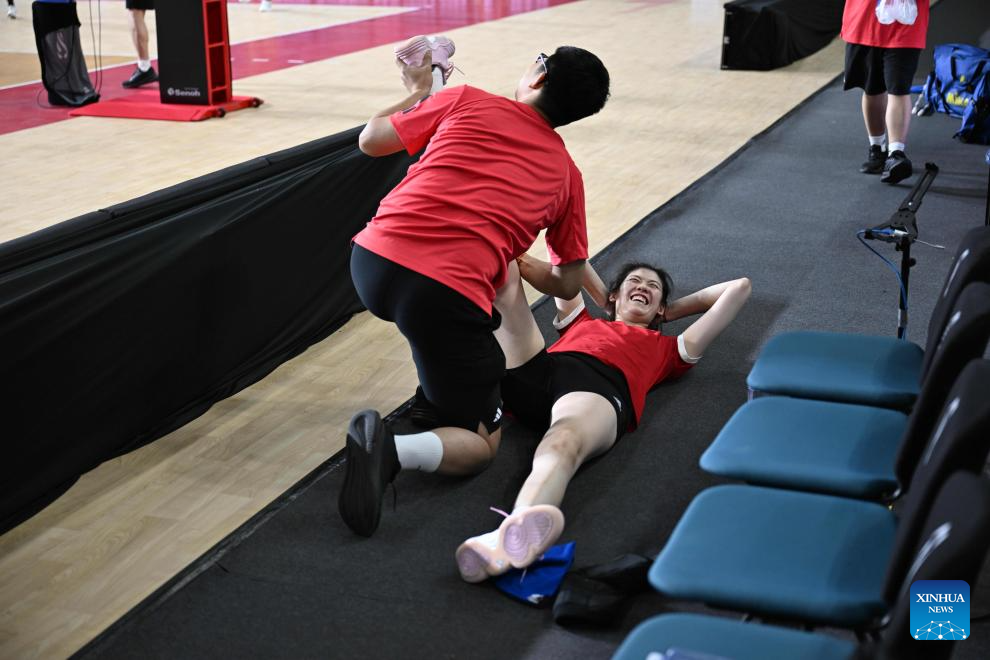 Players of team China take part in a training session ahead of the FIVB Women's Volleyball World Championship in Chiang Mai, Thailand, Aug. 21, 2025. (Xinhua/Sun Weitong)