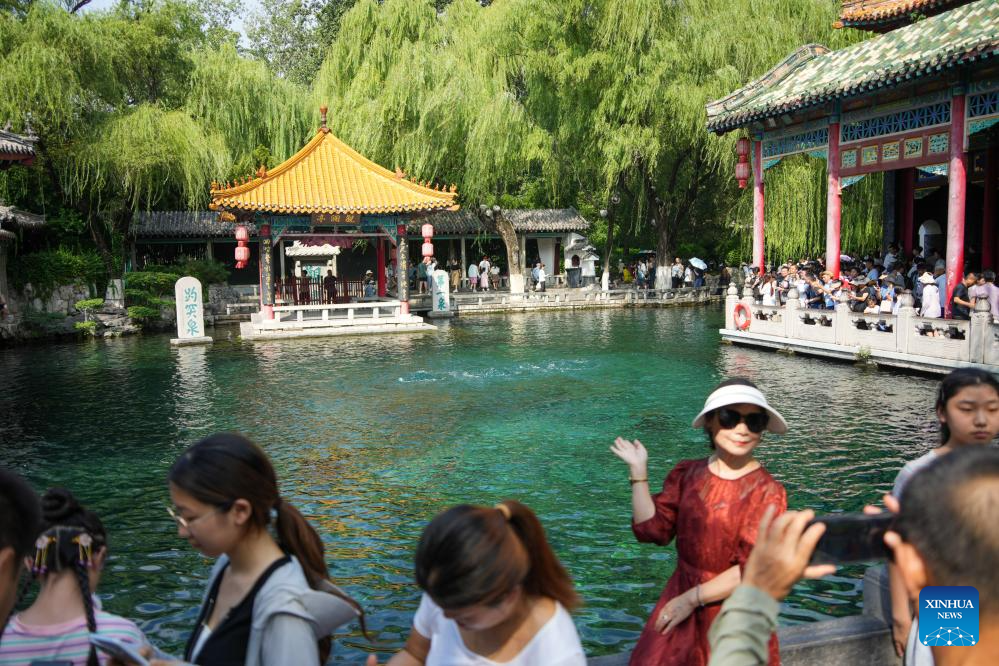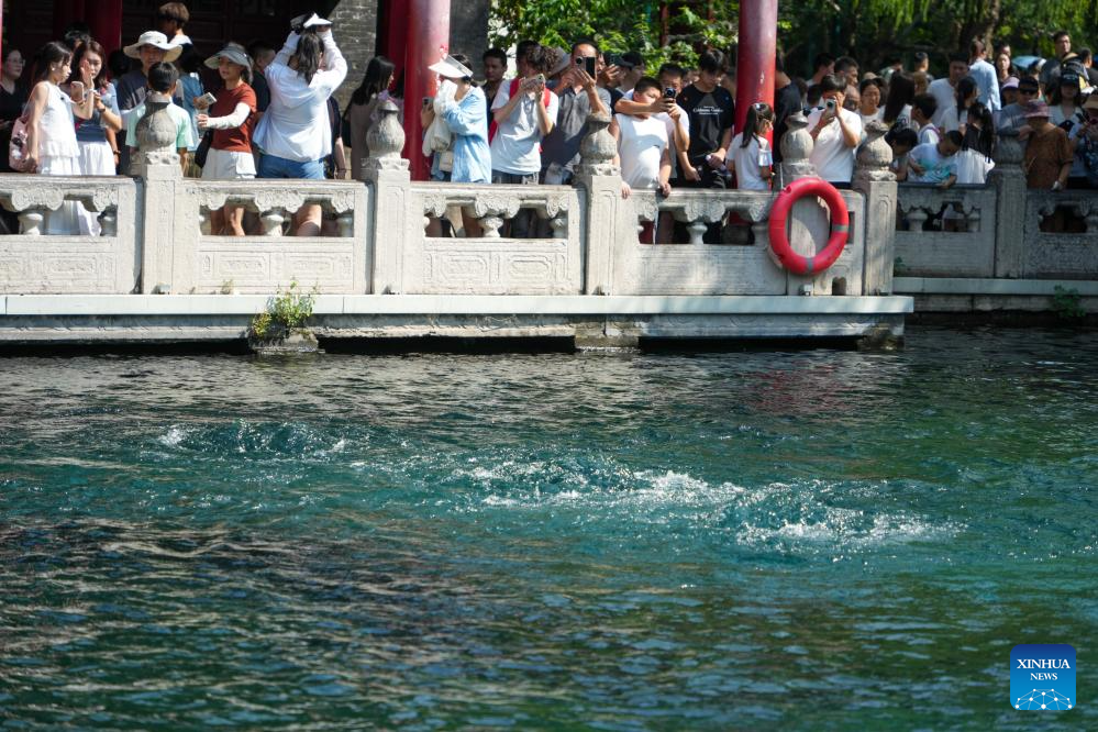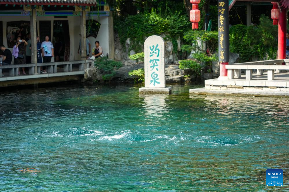 People visit the Baotu Spring in Jinan, east China's Shandong Province, Aug. 22, 2025. (Xinhua/Xu Suhui)