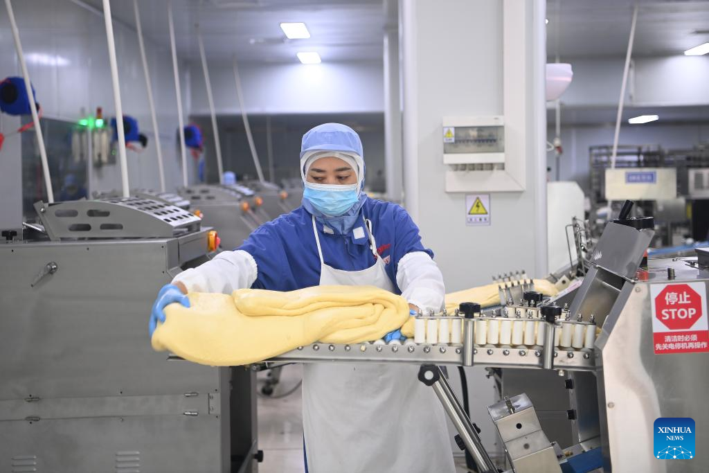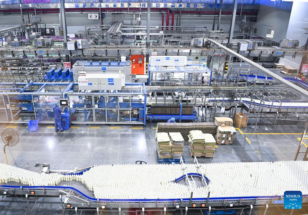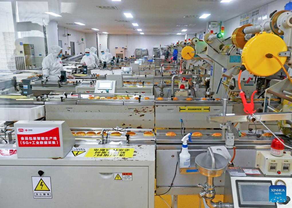 This photo taken on Aug. 19, 2025 shows a production line at the smart workshop of Panpan Foods in Jinjiang, southeast China's Fujian Province. (Xinhua/Xiao Xiao)