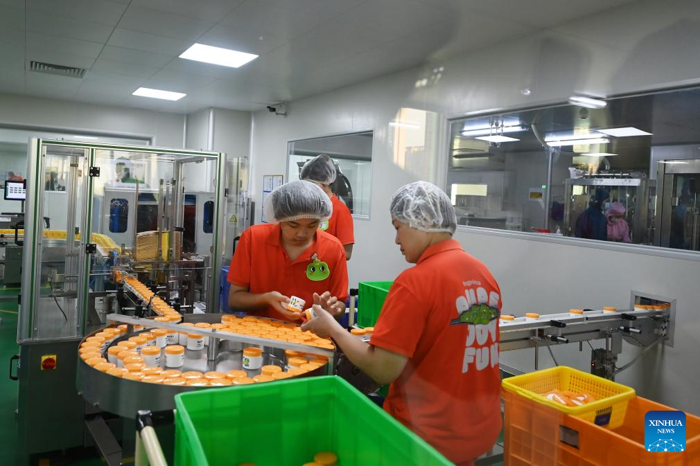 Workers operate at the workshop of Frog Prince (China) Daily Chemicals Co., Ltd. in Zhangzhou, southeast China's Fujian Province, Aug. 22, 2025. (Xinhua/Xiao Xiao)