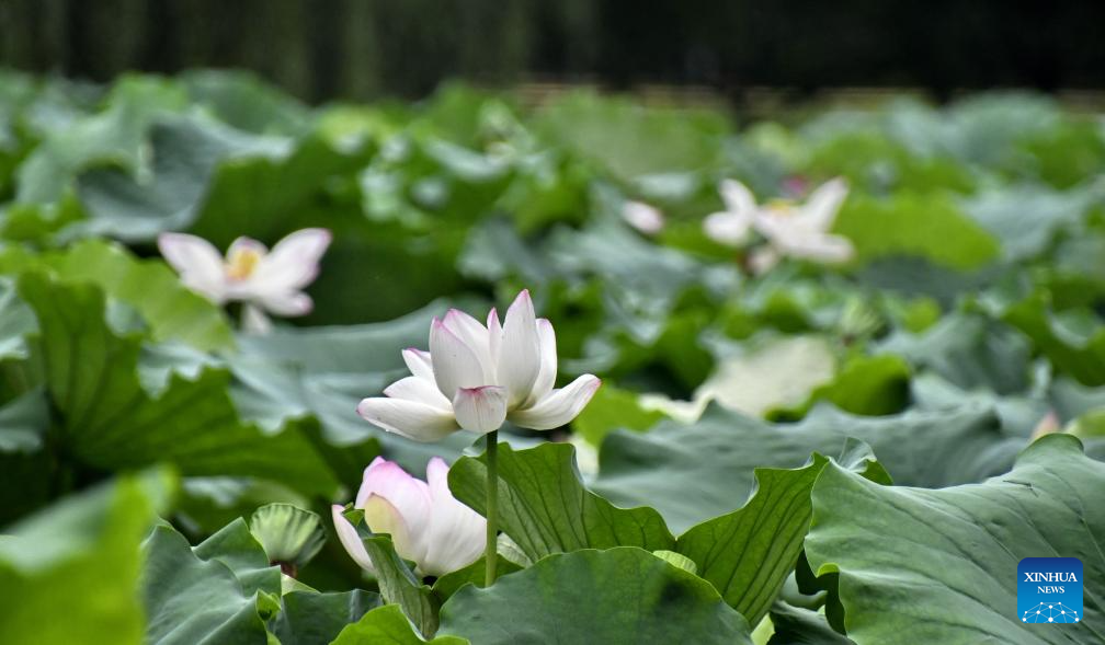 Lotus flowers bloom at Yuanmingyuan Park in Beijing