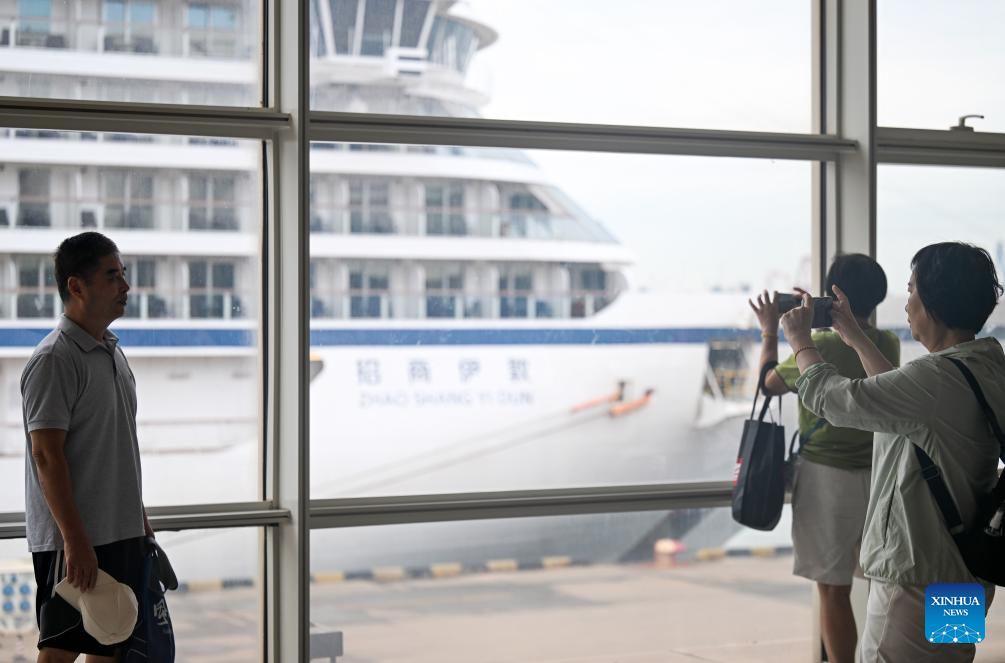 Tourists disembark from the cruise ship Zhao Shang Yi Dun at the Tianjin International Cruise Home Port in Tianjin, north China, Aug. 22, 2025. The cruise ship Zhao Shang Yi Dun arrived in Tianjin for the first time on Friday since commencing official operations. (Xinhua/Zhao Zishuo)
