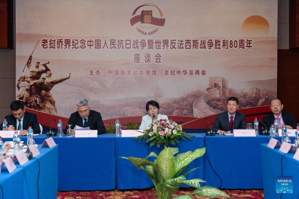 VIENTIANE, Aug. 22 (Xinhua) -- The Chinese Embassy in Laos and the Lao Chinese Chamber of Commerce held a symposium to commemorate the 80th anniversary of the victory in the Chinese People's War of Resistance Against Japanese Aggression and the World Anti-Fascist War.