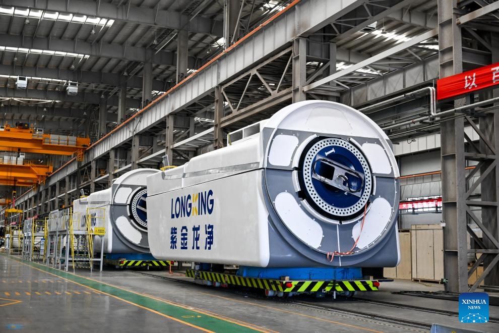 A worker is busy at the general assembly workshop in the Mingyang New Energy Intelligent Manufacturing Industrial Park in Baotou, north China's Inner Mongolia Autonomous Region, July 29, 2025.