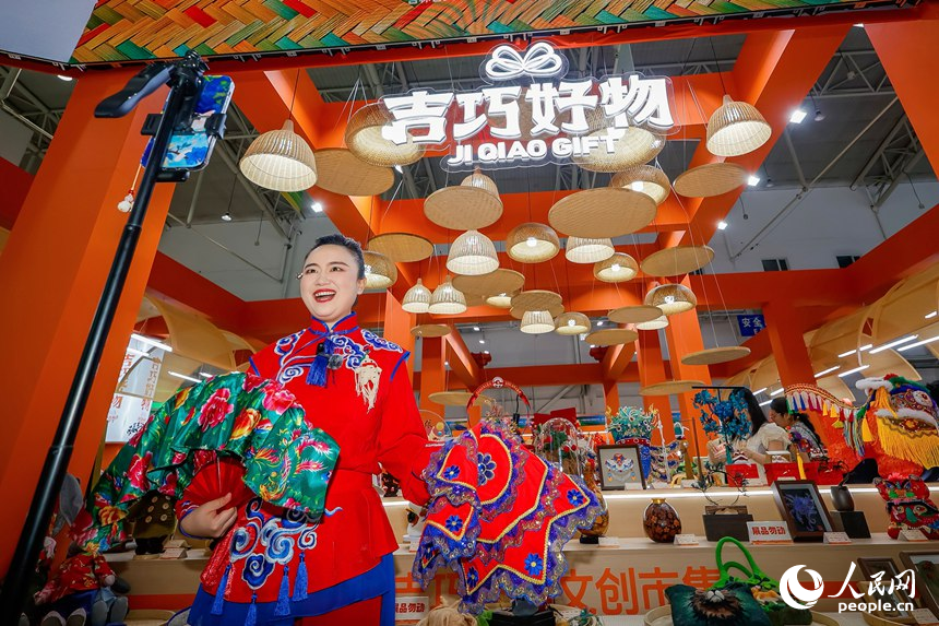 A woman shows exquisite handicrafts at the ongoing 24th China Changchun International Agriculture and Food Expo (Trade) in Changchun, northeast China's Jilin Province. (People's Daily Online/Li Yang)