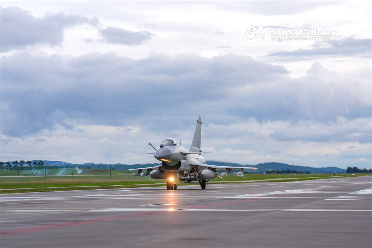 A J-10 fighter jet attached to an aviation brigade of the air force under the Chinese PLA Southern Theater Command taxies on the runway before takeoff for a flight training exercise. (eng.chinamil.com.cn/Photo by Wang Guoyun)