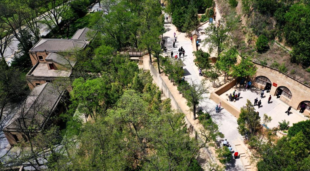 Aerial photo taken on May 8, 2021 shows a former revolutionary site at Yangjialing mountain in Yan'an City, northwest China's Shaanxi Province. (Xinhua/Liu Xiao)