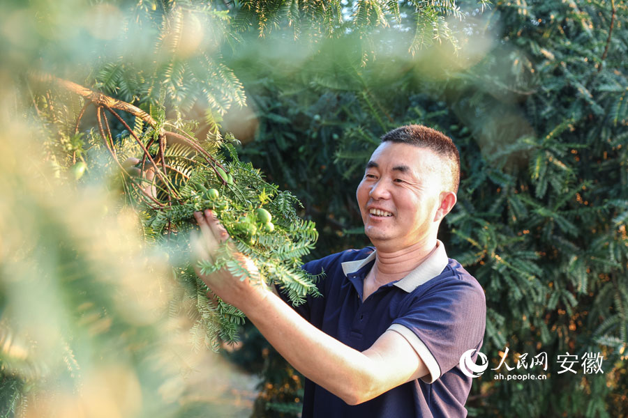 Man transforms barren hills into thriving Torreya grandis forests in E China's Anhui