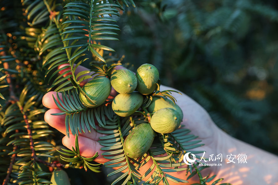 Photo shows Torreya grandis nuts in the Torreya grandis forests of Gaojia village, Baidi town, Jingde county, Xuancheng city, east China's Anhui Province. (People's Daily Online/Zhang Jun)