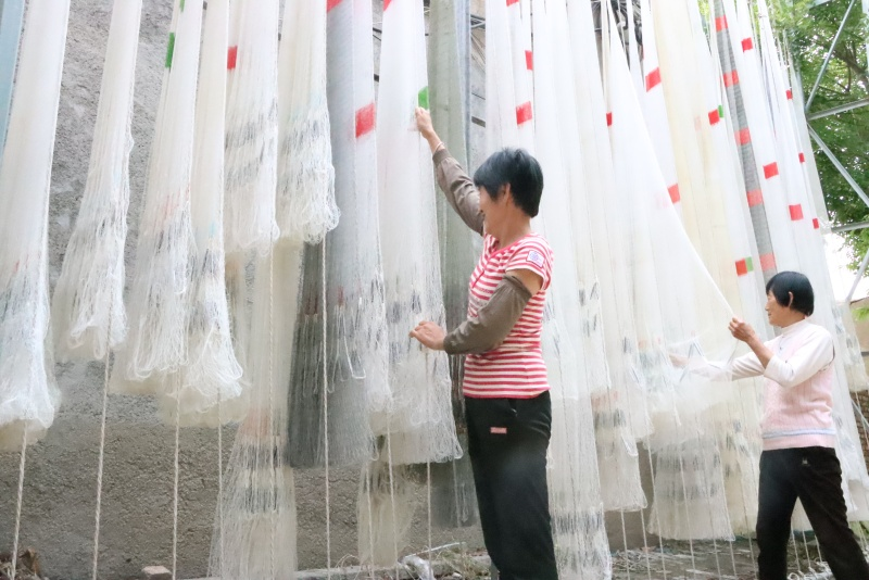 Today, villagers working in the fishing net industry and related industries earn an average annual income of over 600,000 yuan (about $83,905). The skills are easy to learn, allowing widespread participation from the elderly, young people, and left-behind women from nearby villages.