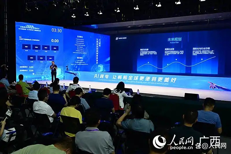 Photo shows the final round of the social track of the 2025 China-ASEAN "AI+Cross-Border E-Commerce" Innovative Application Competition, held on Aug. 24, 2025 in Nanning, south China's Guangxi Zhuang Autonomous Region. (People's Daily Online/Lei Qijun)