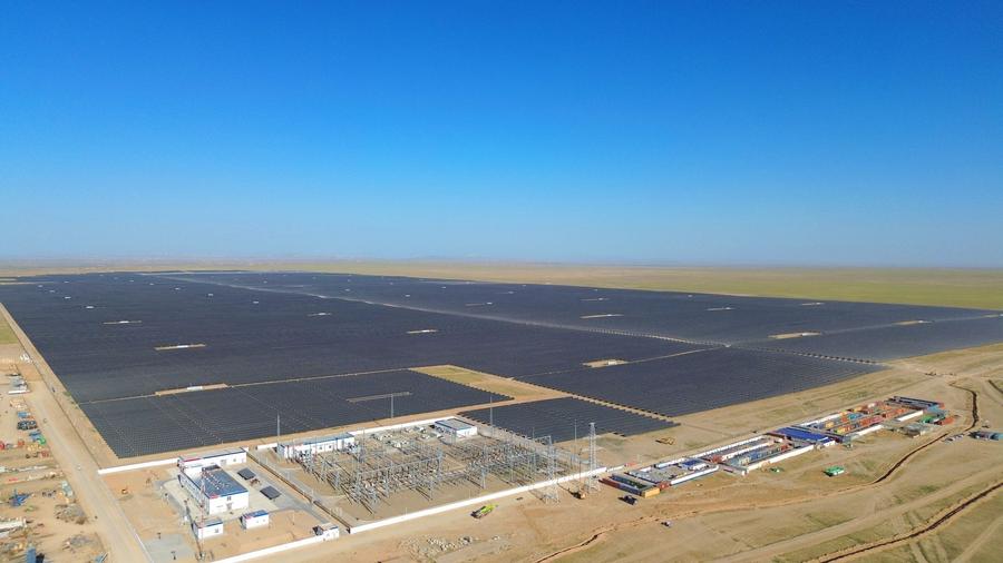 An aerial drone photo shows a view of the 1 GW Photovoltaic Project invested and constructed by Chinese company in the Kashkadarya region of Uzbekistan, June 20, 2024. (Xinhua)