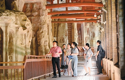 Tourists visit the Dazu Rock Carvings, a UNESCO World Heritage site in Dazu district, southwest China's Chongqing Municipality. (Photo/Xu Chunmao)
