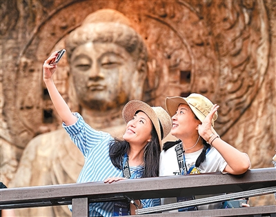 Photo shows tourists at the Longmen Grottoes, a UNESCO World Heritage site in Luoyang, central China's Henan Province. (Photo/Zhang Guanghui)