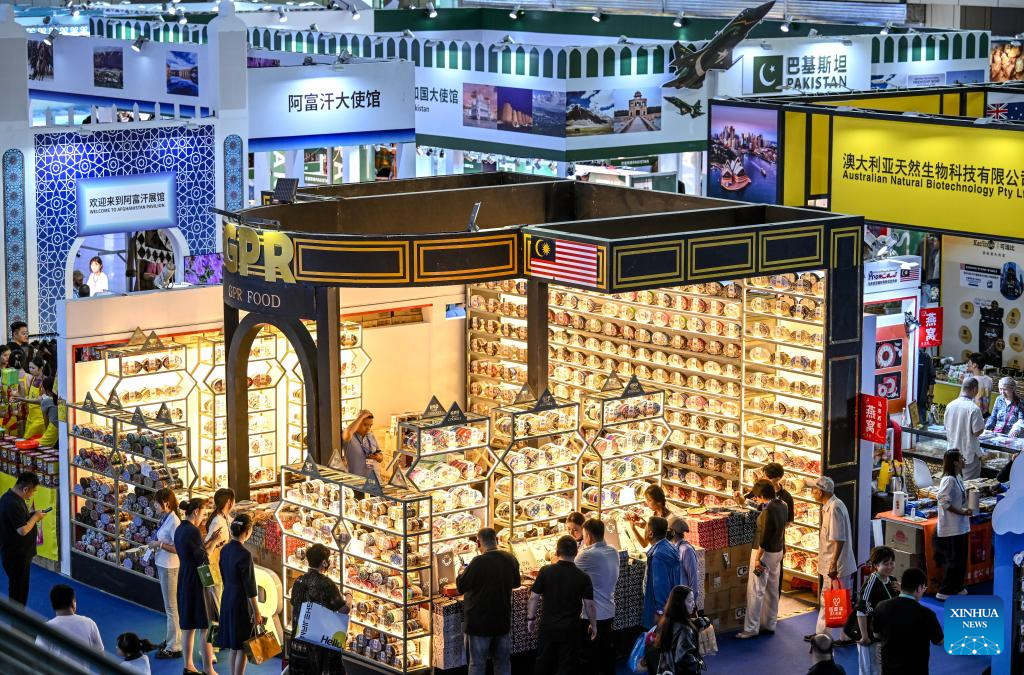 People visit the seventh China-Arab States Expo in Yinchuan, northwest China's Ningxia Hui Autonomous Region, Aug. 28, 2025. The seventh China-Arab States Expo kicked off on Thursday in Yinchuan, capital of northwest China's Ningxia Hui Autonomous Region, attracting more than 7,600 participants and over 2,200 enterprises and institutions from 75 countries and regions. (Xinhua/Feng Kaihua)