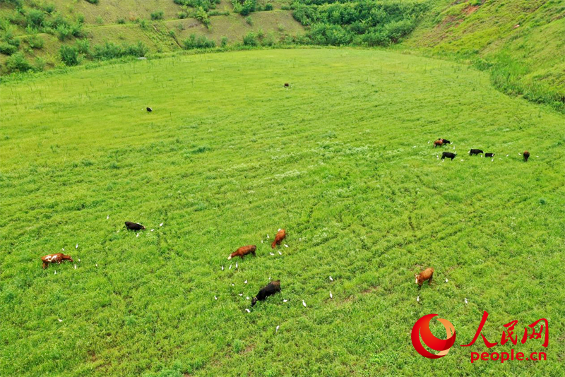 Dongguacao, once a mining area, is now covered with grass and trees, where cattle graze and birds fly. (People's Daily Online/Shi Yu)