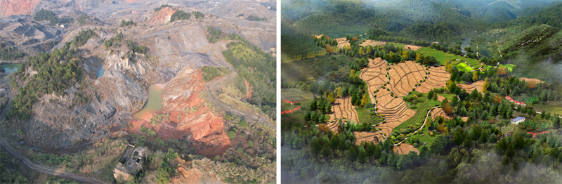 Photo shows Dongguacao before and after a comprehensive restoration project. (Photo courtesy of the Xiangdong branch of Pingxiang's Natural Resources and Planning Bureau)