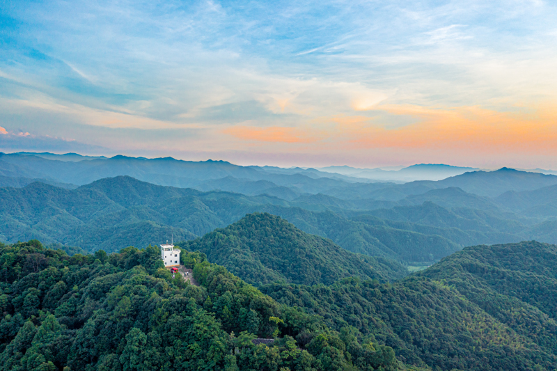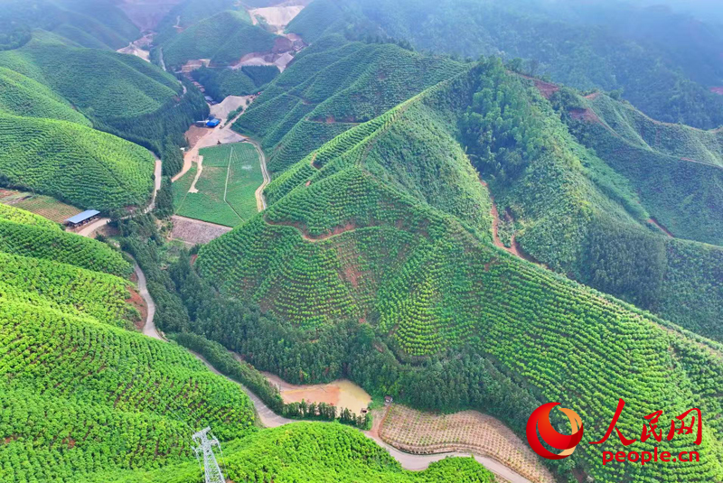 Photo shows an aerial view of Jinpen Mountain Forest Farm in Xinfeng county, Ganzhou city, east China's Jiangxi Province. (People's Daily Online/Qiu Guowei)