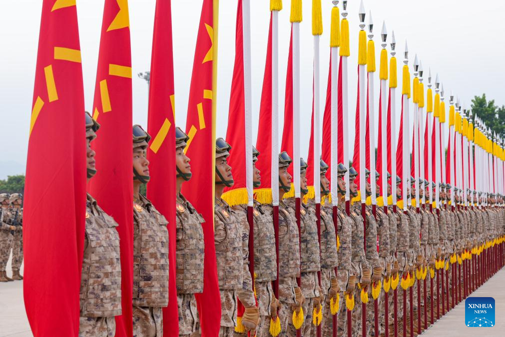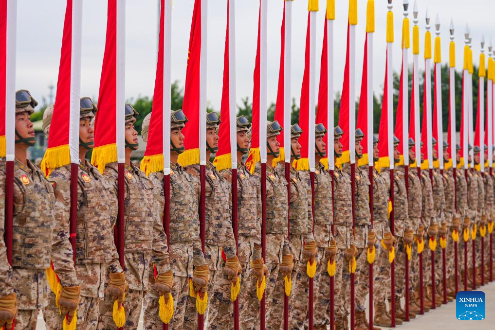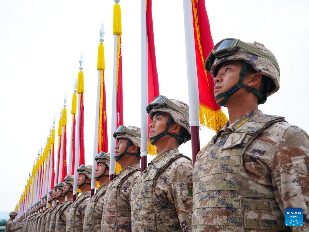 Participants take part in a training for the upcoming V-Day military parade in Beijing, capital of China, Aug. 14, 2025. Participants are busy preparing for the upcoming V-Day military parade scheduled on Sept. 3 in Tian'anmen Square to mark the 80th anniversary of the victory in the Chinese People's War of Resistance Against Japanese Aggression and the World Anti-Fascist War. (Photo by Wang Huanbin/Xinhua)