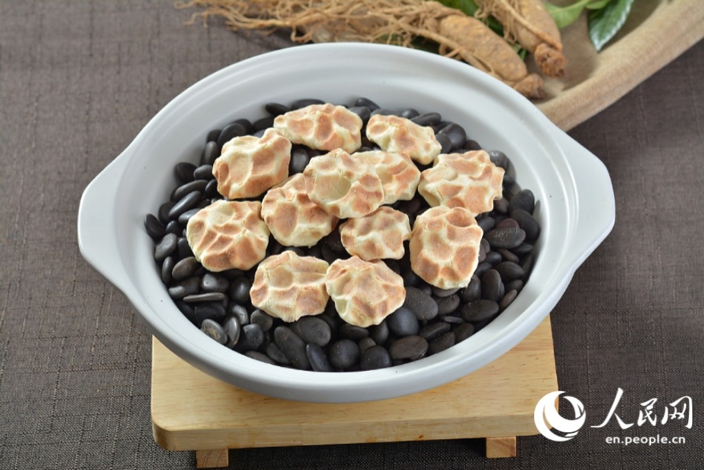 Baked flatbread made with ginseng powder, flour, and eggs, perfectly blending the nutty aroma of wheat with the earthy essence of ginseng at a restaurant in Tonghua, northeast China's Jilin Province. (Photo provided to People's Daily Online)
