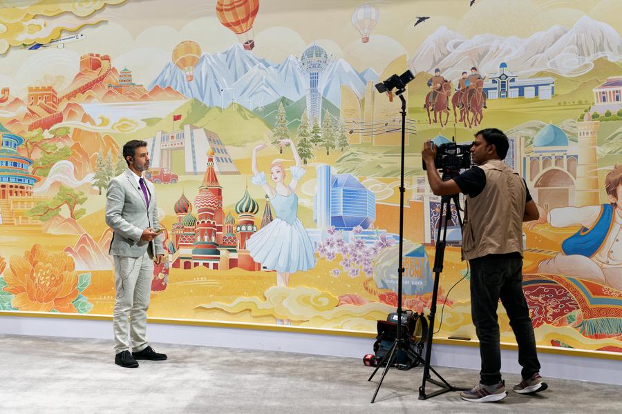 Foreign reporters work at the media center for the Shanghai Cooperation Organization (SCO) Summit 2025 in north China's Tianjin on Aug. 30, 2025. (Xinhua/Zhang Xiaoyu)