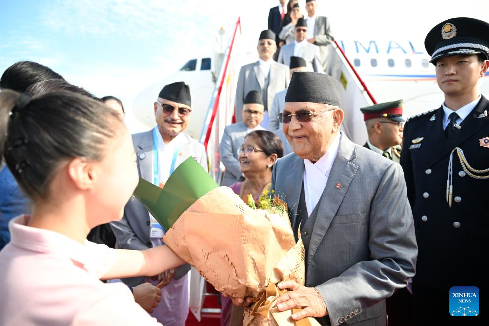 Nepali Prime Minister KP Sharma Oli arrives for the Shanghai Cooperation Organization (SCO) Summit 2025 in Tianjin, north China, Aug. 30, 2025. (Xinhua/Zhao Zishuo)
