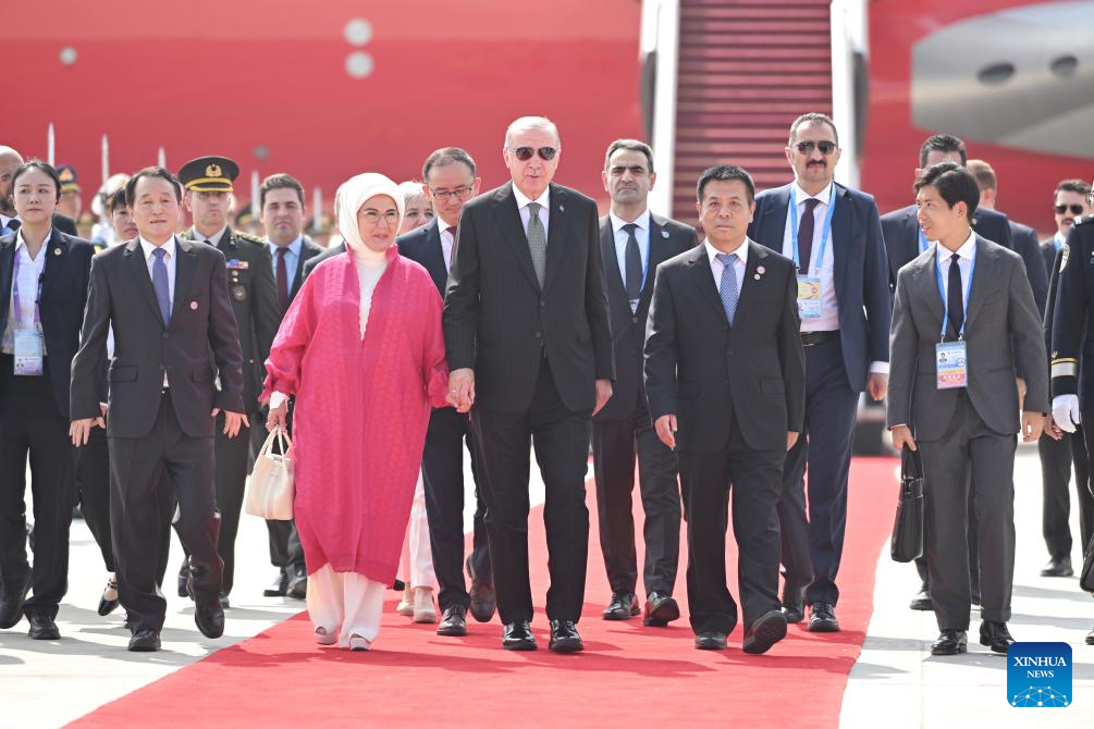 Turkish President Recep Tayyip Erdogan arrives for the Shanghai Cooperation Organization (SCO) Summit 2025 in Tianjin, north China, Aug. 31, 2025. (Xinhua/Li Ran)