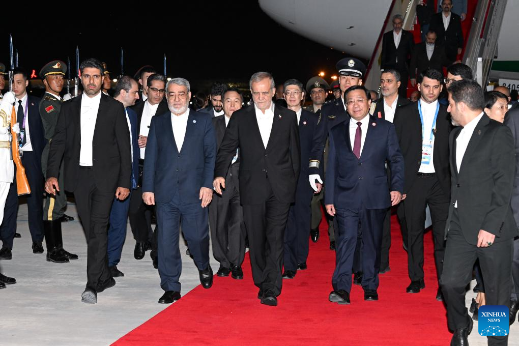 Iran's President Masoud Pezeshkian arrives for the Shanghai Cooperation Organization (SCO) Summit 2025 in Tianjin, north China, Aug. 31, 2025. (Xinhua/Huang Bohan)