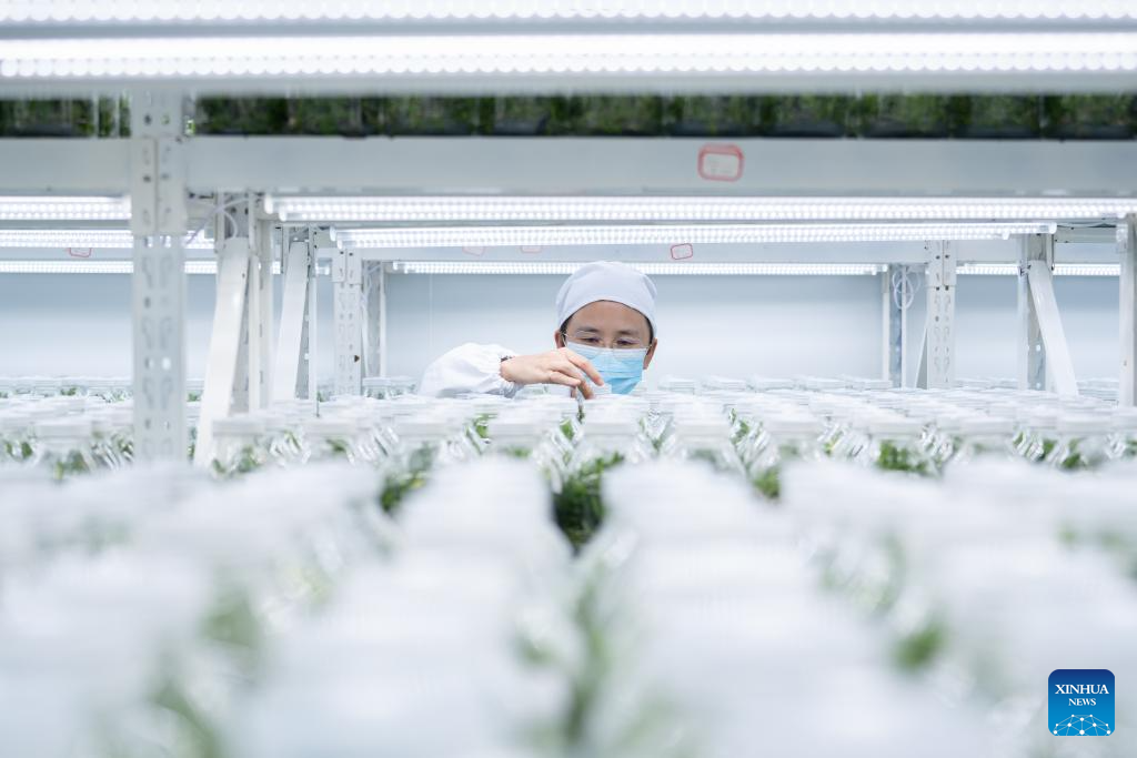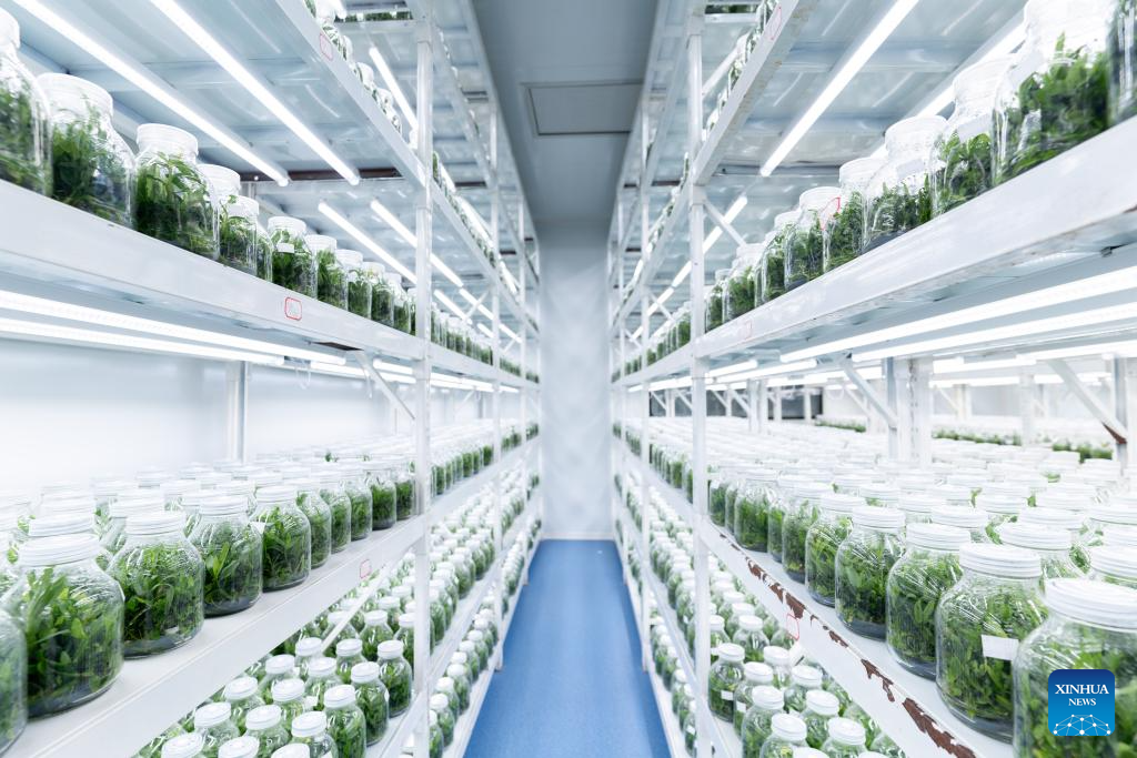 A staff member checks the condition of dendrobium officinale seedlings at a dendrobium officinale planting base in Guangnan County, Wenshan Zhuang and Miao Autonomous Prefecture, southwest China's Yunnan Province, Aug. 27, 2025. By adopting an integrated industrial model connecting companies, cooperatives, production bases, and farmers, Guangnan County has established a comprehensive development framework centered on dendrobium officinale, a valuable Chinese herbal medicine. The framework spans cultivation, processing, sales, and health tourism, boosting local farmers' income. (Xinhua/Gao Yongwei)