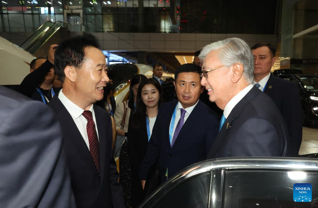 Kazakh President Kassym-Jomart Tokayev, who is here for the Shanghai Cooperation Organization (SCO) Summit 2025, leaves Tianjin for Beijing to attend the commemorations marking the 80th anniversary of the victory in the Chinese People's War of Resistance against Japanese Aggression and the World Anti-Fascist War, on Sept. 1, 2025. (Xinhua/Yang Qing)