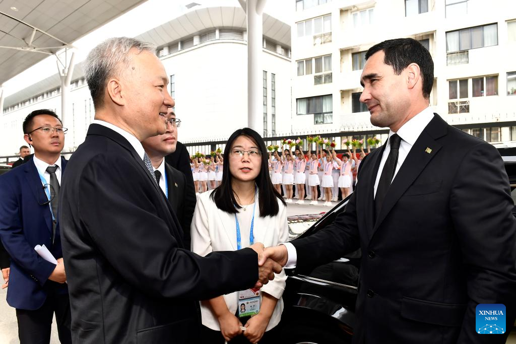 Turkmen President Serdar Berdimuhamedov leaves Tianjin after attending the Shanghai Cooperation Organization (SCO) Summit 2025, for Beijing to attend the commemorations marking the 80th anniversary of the victory in the Chinese People's War of Resistance against Japanese Aggression and the World Anti-Fascist War, on Sept. 2, 2025. (Xinhua/Guo Xulei)