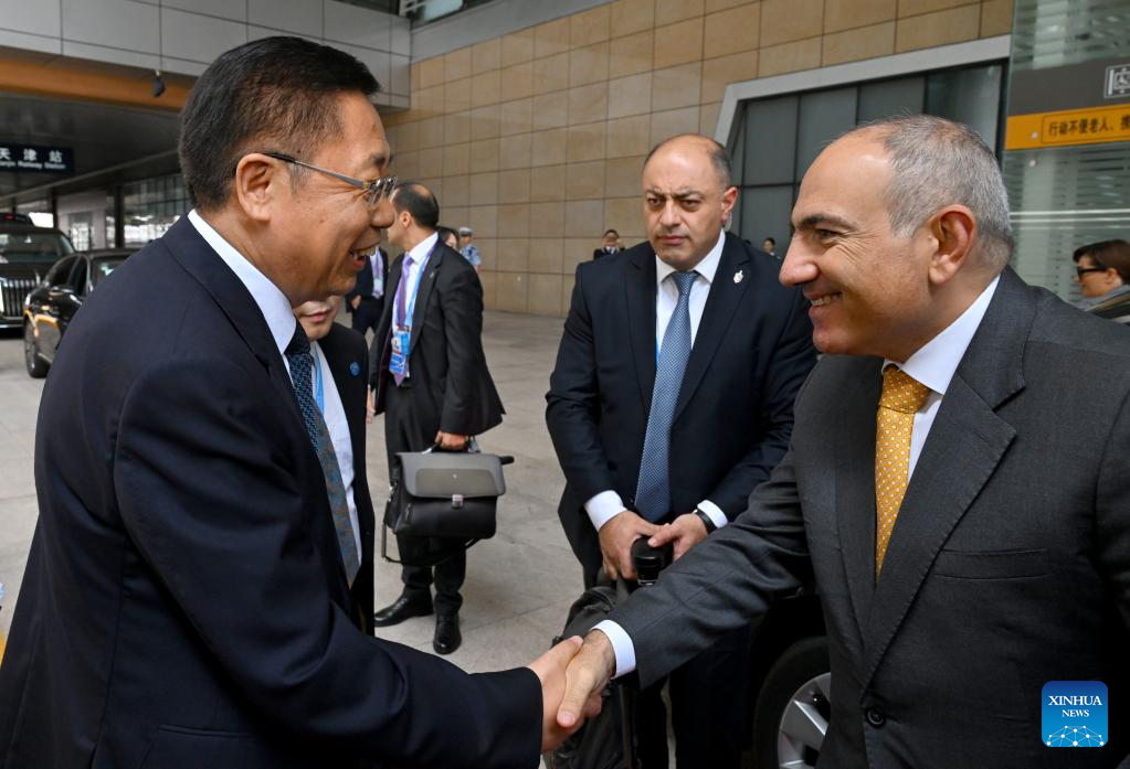 Armenian Prime Minister Nikol Pashinyan leaves Tianjin after attending the Shanghai Cooperation Organization (SCO) Summit 2025, for Beijing to attend the commemorations marking the 80th anniversary of the victory in the Chinese People's War of Resistance against Japanese Aggression and the World Anti-Fascist War, on Sept. 2, 2025. (Xinhua/Hao Yuan)