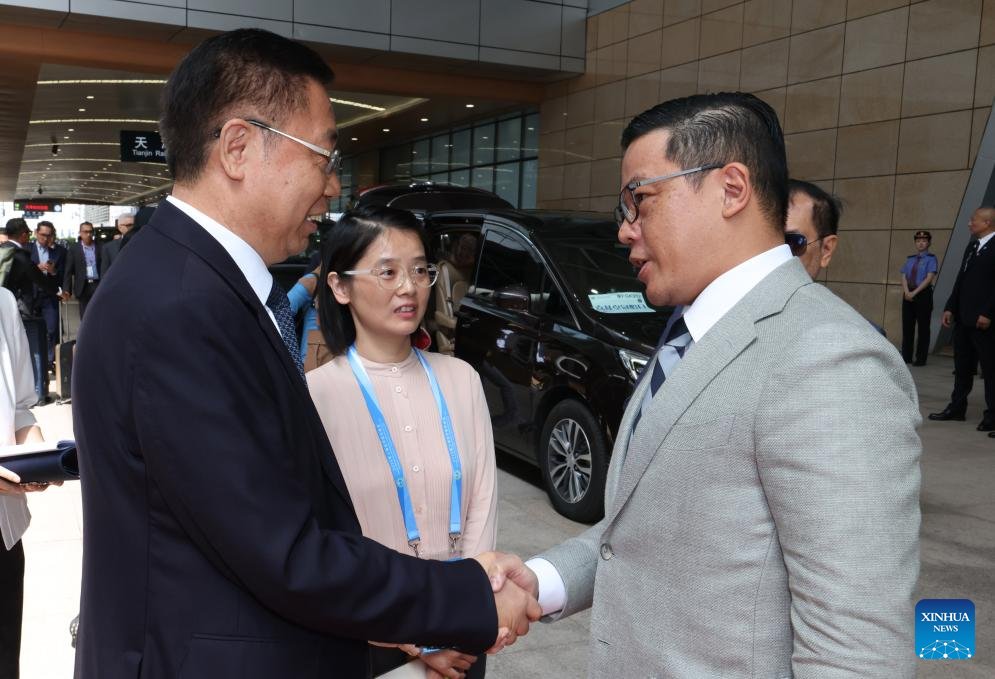 Indonesian Foreign Minister Sugiono leaves Tianjin after attending the Shanghai Cooperation Organization (SCO) Summit 2025, for Beijing to attend the commemorations marking the 80th anniversary of the victory in the Chinese People's War of Resistance against Japanese Aggression and the World Anti-Fascist War, on Sept. 2, 2025. (Xinhua/Yang Qing)