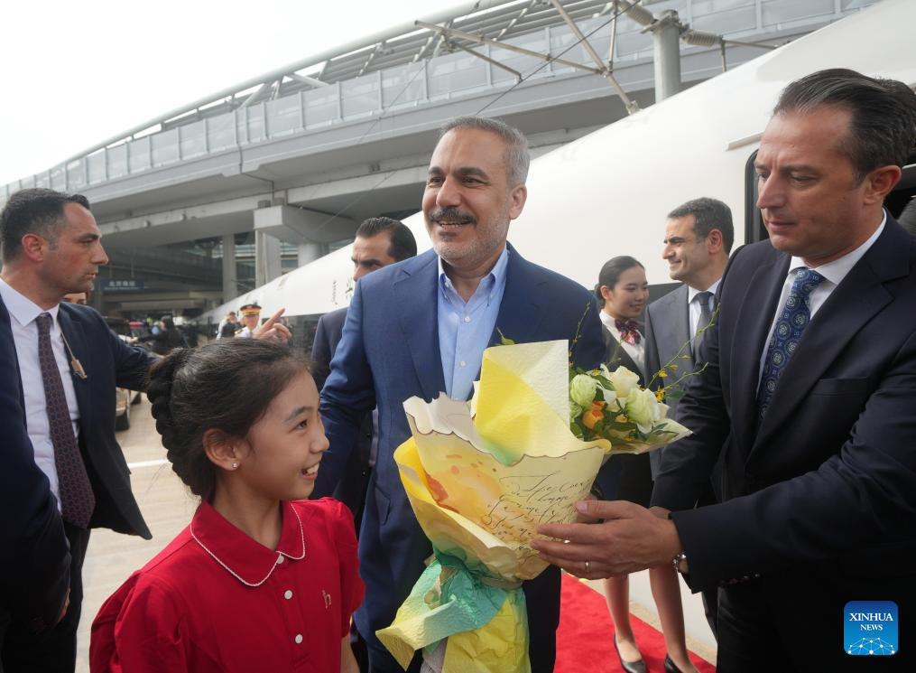 Turkish Foreign Minister Hakan Fidan arrives in Beijing, capital of China, Sept. 2, 2025, for the commemorations marking the 80th anniversary of the victory in the Chinese People's War of Resistance against Japanese Aggression and the World Anti-Fascist War. (Xinhua/Mu Yu)