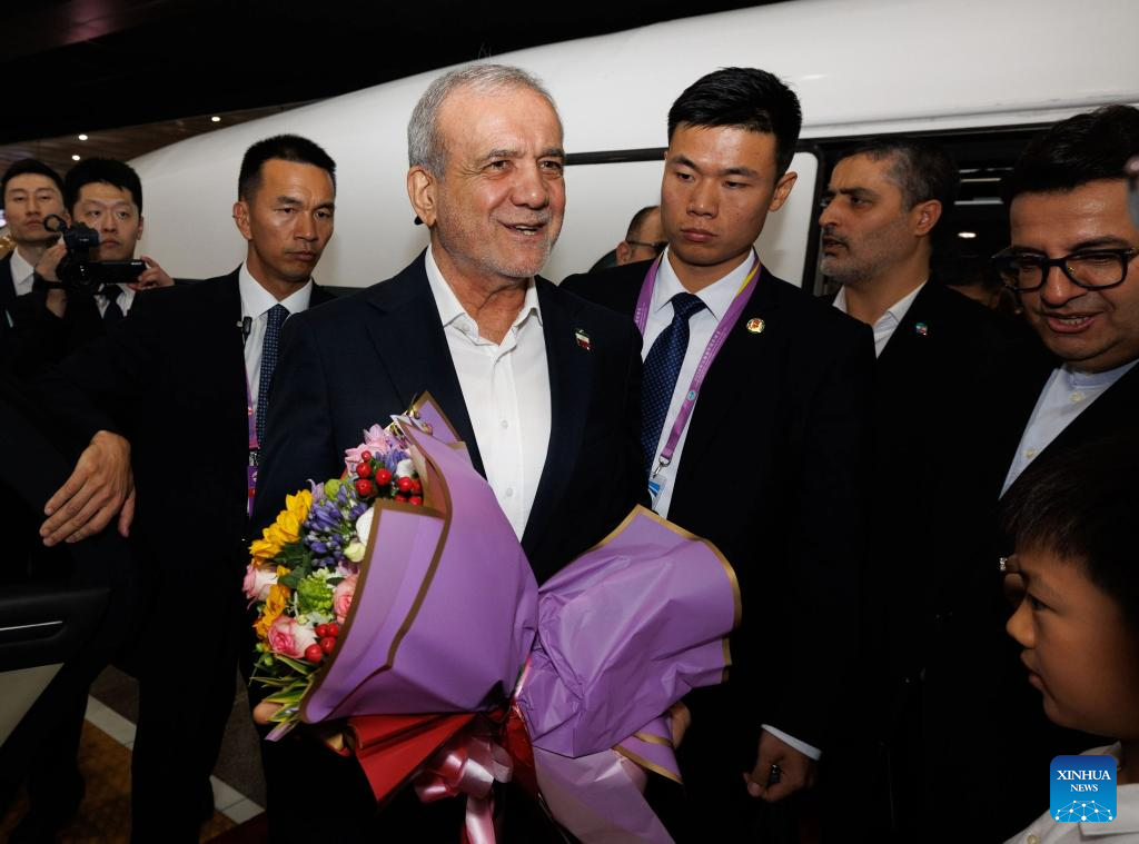 Iran's President Masoud Pezeshkian arrives in Beijing, capital of China, Sept. 2, 2025, for the commemorations marking the 80th anniversary of the victory in the Chinese People's War of Resistance against Japanese Aggression and the World Anti-Fascist War. (Xinhua/Jin Liwang)