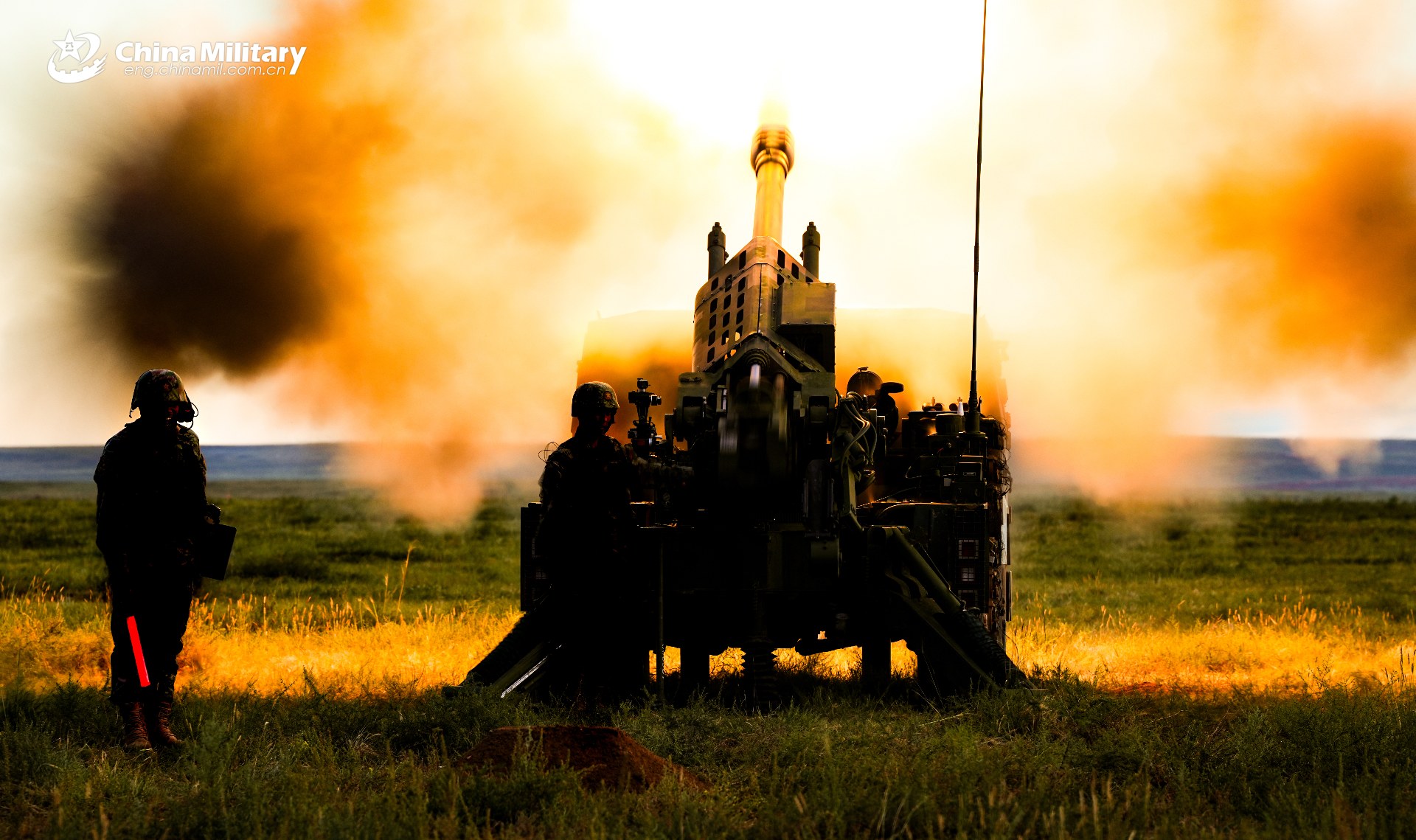 A wheeled self-propelled howitzer attached to a brigade under the Chinese PLA 78th Group Army fires at target during a live-fire shooting training exercise on August 22, 2025. (eng.chinamil.com.cn/Photo by Ni Guojian)