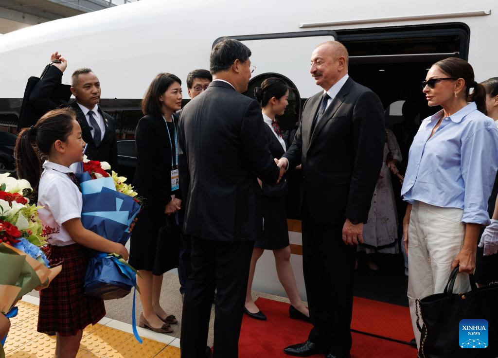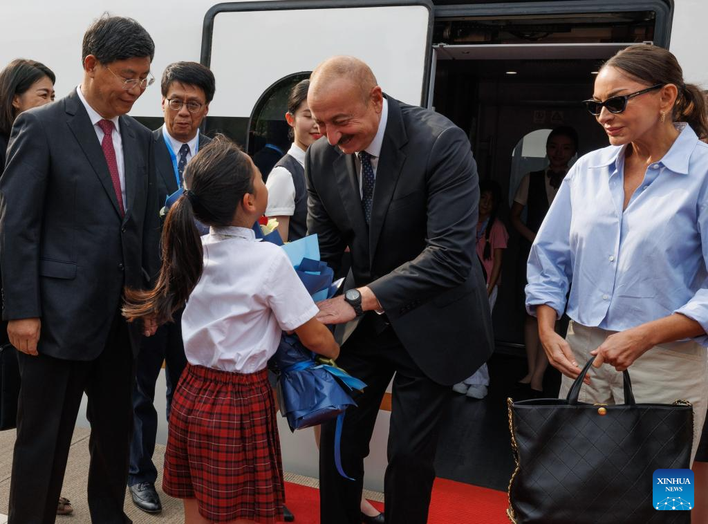 Azerbaijani President Ilham Aliyev arrives in Beijing, capital of China, Sept. 2, 2025, for the commemorations marking the 80th anniversary of the victory in the Chinese People's War of Resistance against Japanese Aggression and the World Anti-Fascist War. (Xinhua/Jin Liwang)